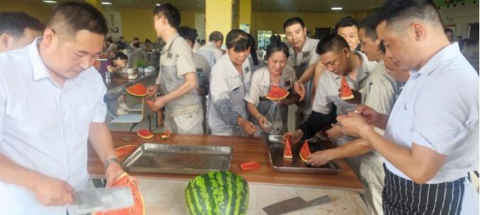 在發(fā)放現(xiàn)場,公司相關(guān)負(fù)責(zé)人親自將防暑物資一一送到員工手中,叮囑大家在高溫天氣下一定要注意防暑降溫,合理安排工作時間,確保自身安全與健康。同時,強調(diào)各部門負(fù)責(zé)人要時刻關(guān)注員工的身體狀況,在保障工作正常開展的前提下,靈活調(diào)整工作安排,避免員工長時間在高溫環(huán)境下作業(yè)。在食堂,公司定時定點的安排人員,合理有序的為員工發(fā)放切好的西瓜。